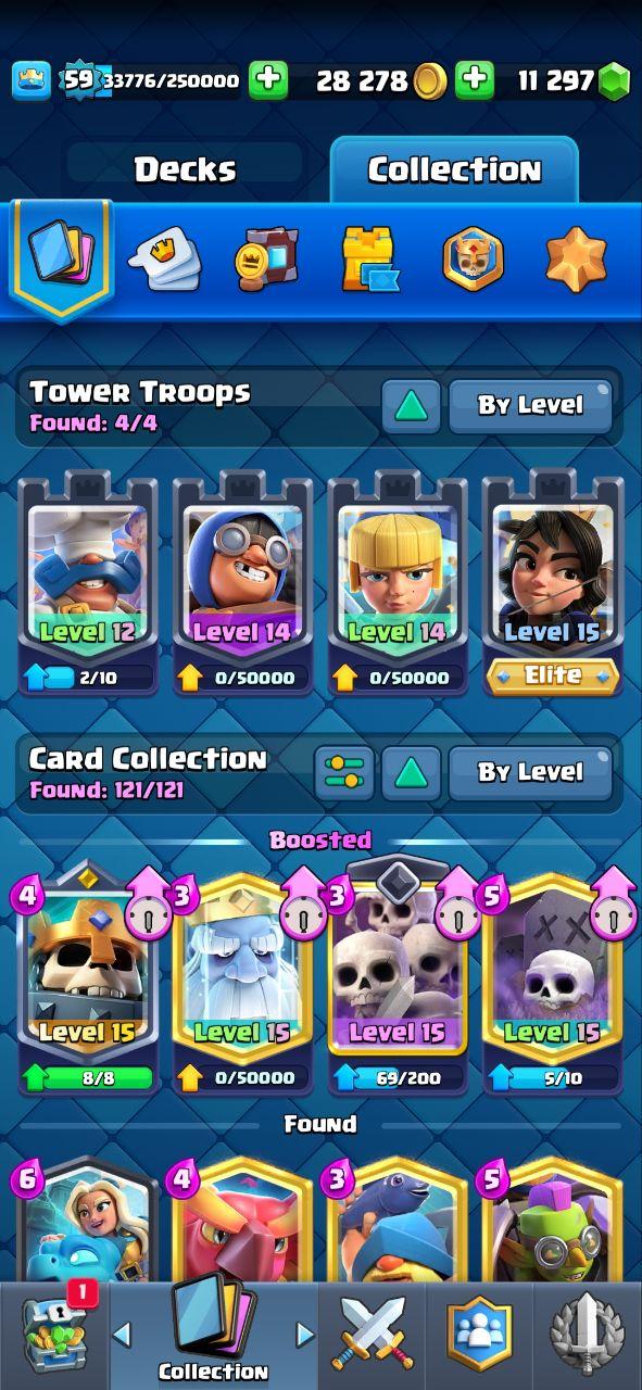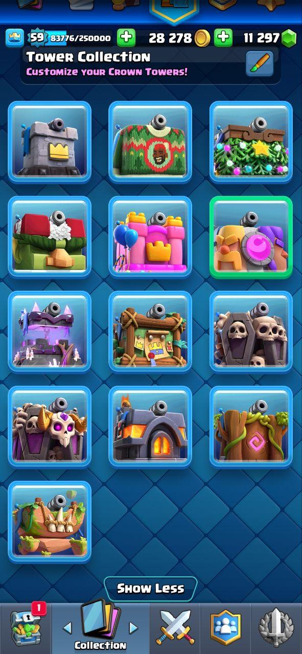🔥11297 GEMS🔥 | KT15 XP59 | 84 MAX 17 ELITE | 19 EVOLOTIONS | 95 EMOTES | 12000 TROPHY | 12 TOWER | INSTANT DELIVERY