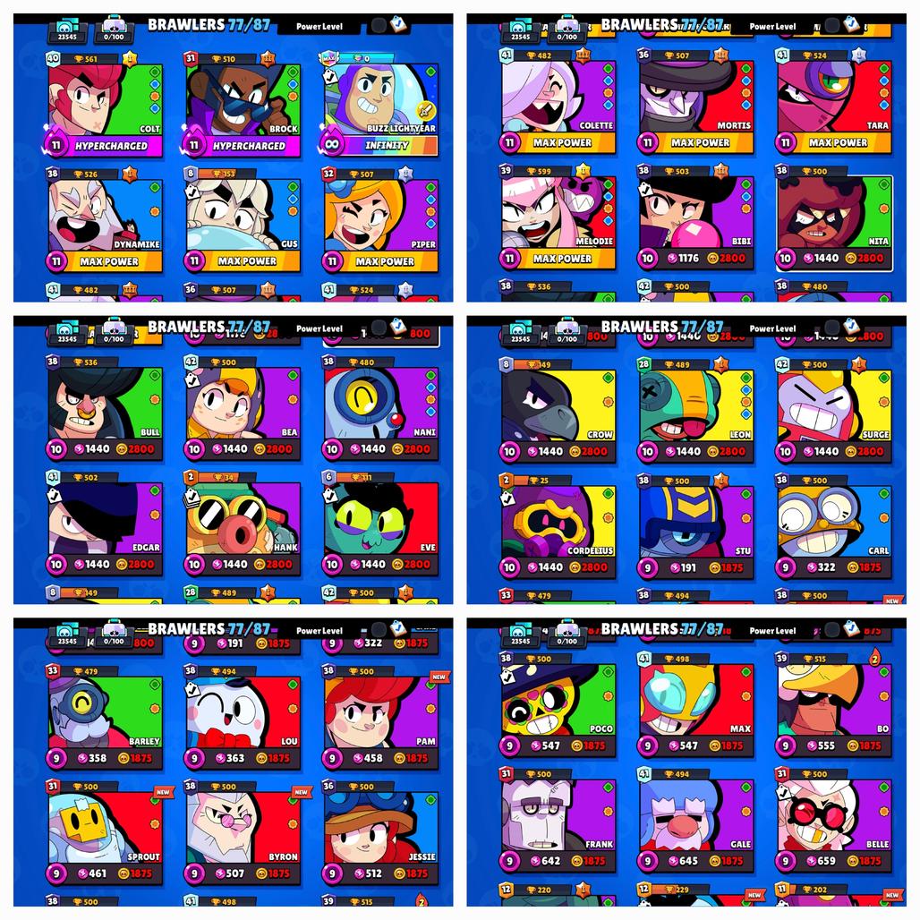 23.5K Trophy | High Level-183 | 10x Max Brawler| 23.5K Trophy | 77x Brawler | 80 Skin | True Silver Colette | Instant