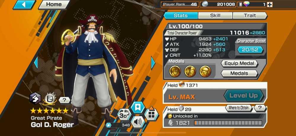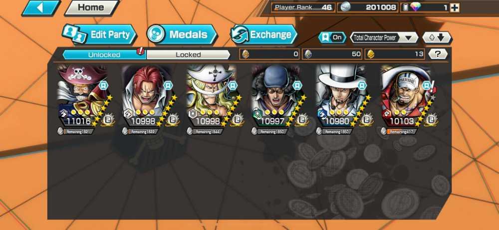 [3069][IOS+ANDROID] 6 EX - Roger Dark + Kuzan + Whitebeard + Lucci + Akainu , Support 151 , Good Medal , HB 16