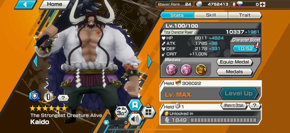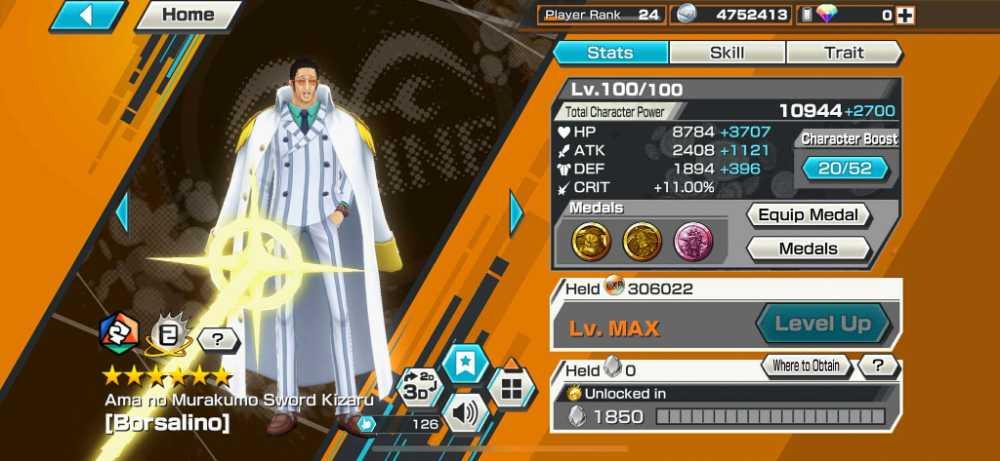 [3106] 7 EX META - Kizaru ( Skin ) + Kuzan + Zephyr + + Kaido + Shanks Light + 2 Big Mom , BFs META - Fujitora + Amaraki
