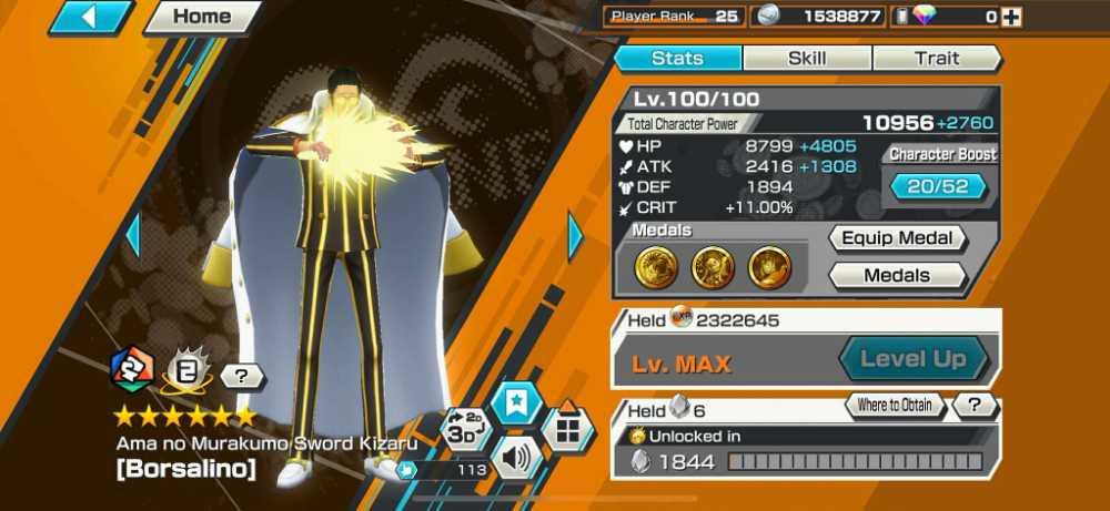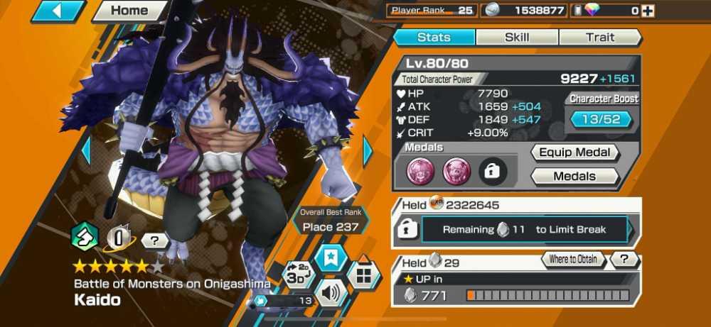 [3123][IOS+ANDROID] 6 EX - Kizaru + Kuzan + Lucci + Roger + 2 Kaido , Support 141 , Best Medal