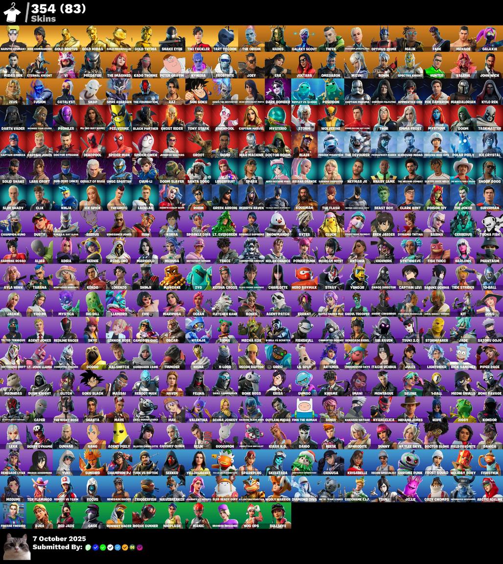 354 Skins | Chun-Li - Joltara - Lara Croft - Caper - Focus - Sparkplug - Aura - Manic - Tsuki - Glitch - Nog Ops
