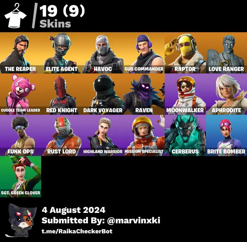 [PC | PSN | XBOX] 19 Skins | The Reaper | Elite Agent | Sub Commander | Brite Bomber | Havoc | Raptor | BEST MAIN