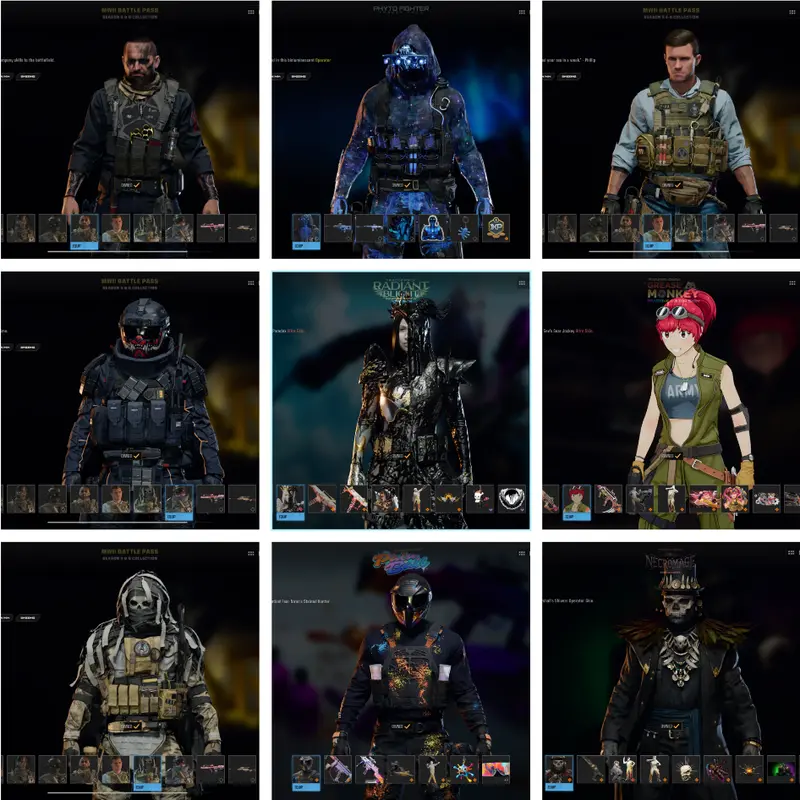 (WZ1/MW1) Neutron • Happy (Enigma) • Jabber (Swan) • Nova (Gaia) • Luciferin • + more 🌈 ULTRA OPERATOR SKINS (BO6 + WZ4) Stained Hunter • Shaivers • Gear Jockey • Sev – Urban Shortfin • Bailey – Low Tide