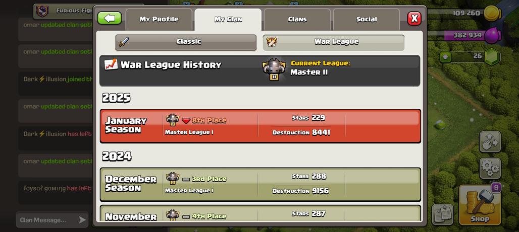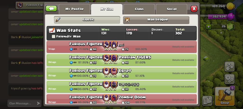 Clan Level-23 -Cp-10 100% Max-All Troops Max- League Master 2- English Name-Clan Name- Furious Fighter - Good War Log -
