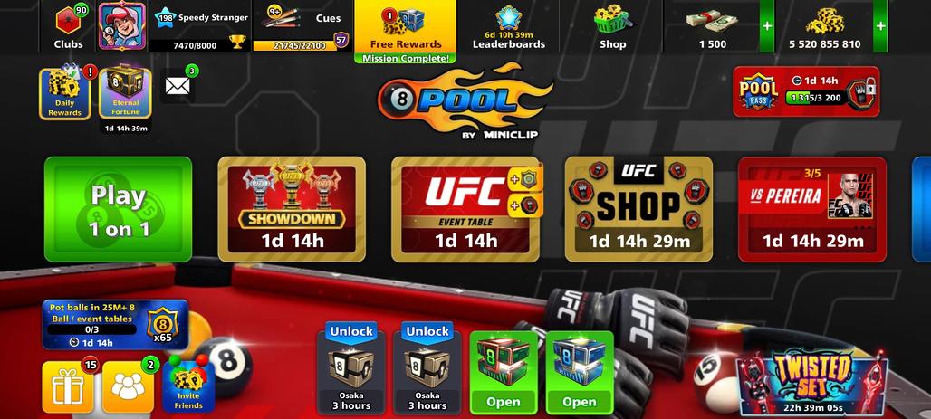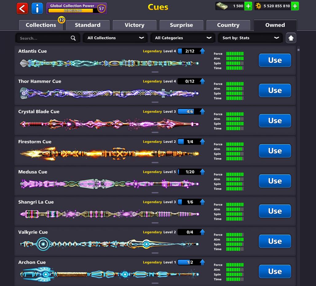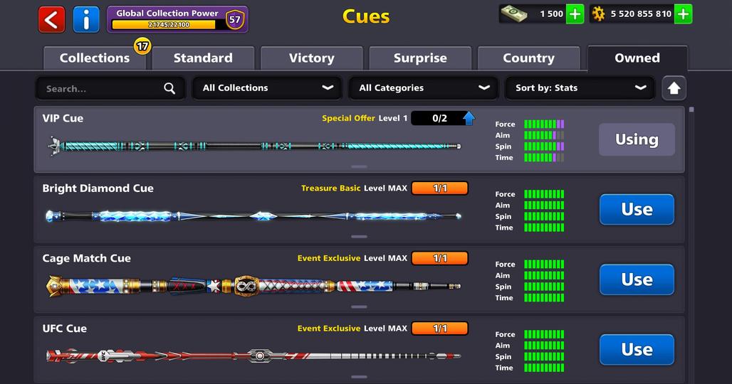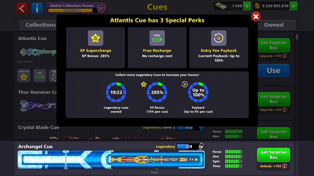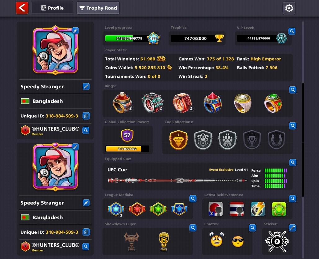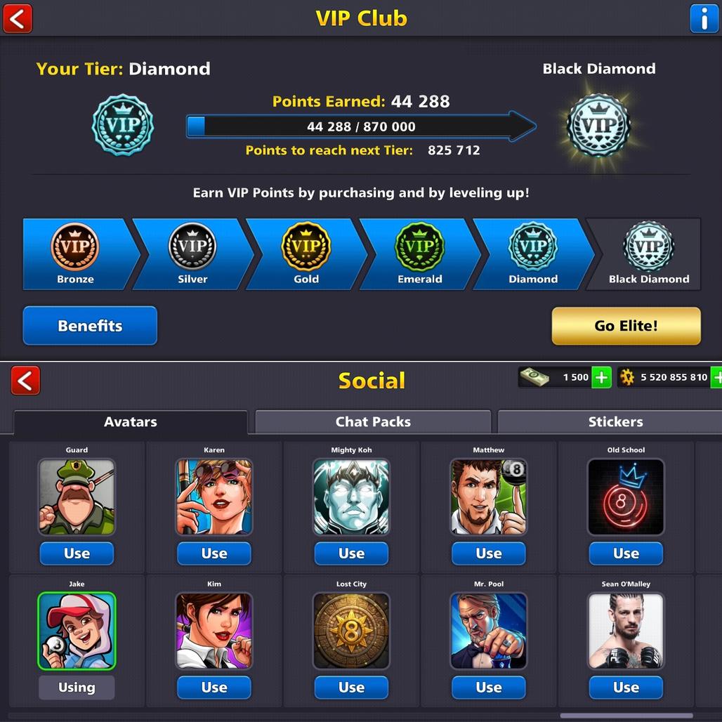 LEVEL 198 | 5.5 Billion Coins | 1.5K Cash | 19 Legendary Cues | 3 Exclusive Cues MAX | VIP Diamond | Fresh Account