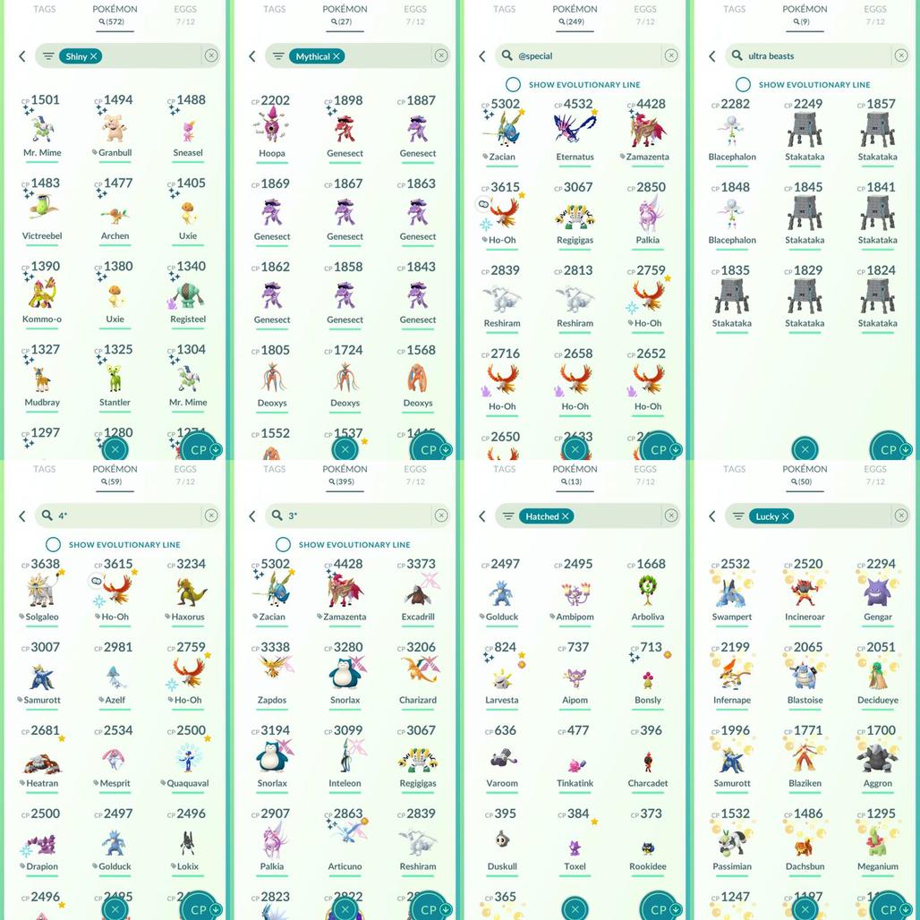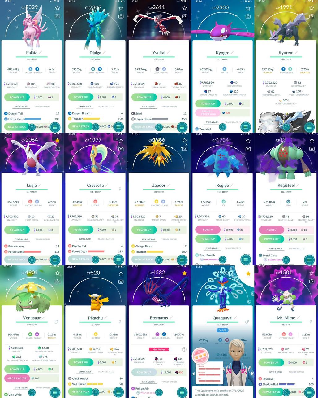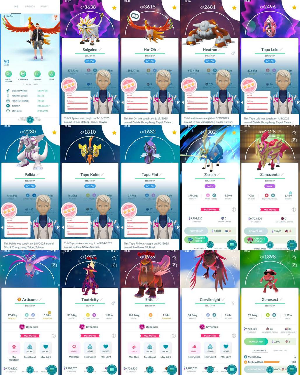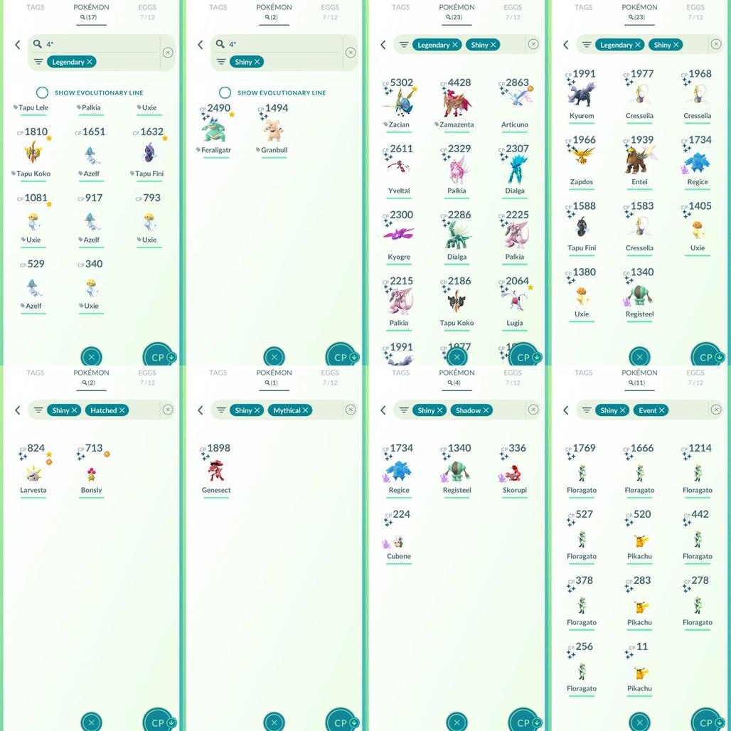 ✨ Legendary & IV100 : 17 (Hundo Solgaleo, 2 Hundo Purified Ho-Oh, 4 Hundo Azelf, Hundo Heatran, Hundo Mesprit, Hundo Tapu Lele, Hundo Palkia, Hundo Uxie, Hundo Tapu Koko, Hundo Tapu Fini, 3 Hundo Uxie)