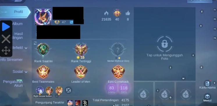 MLBB Account Skin Star Annual Lesley, Epic Moskov, Grock, Hanabi, 1 Starlight Card, Max Emblem remaining Support, Lead Squad (G)