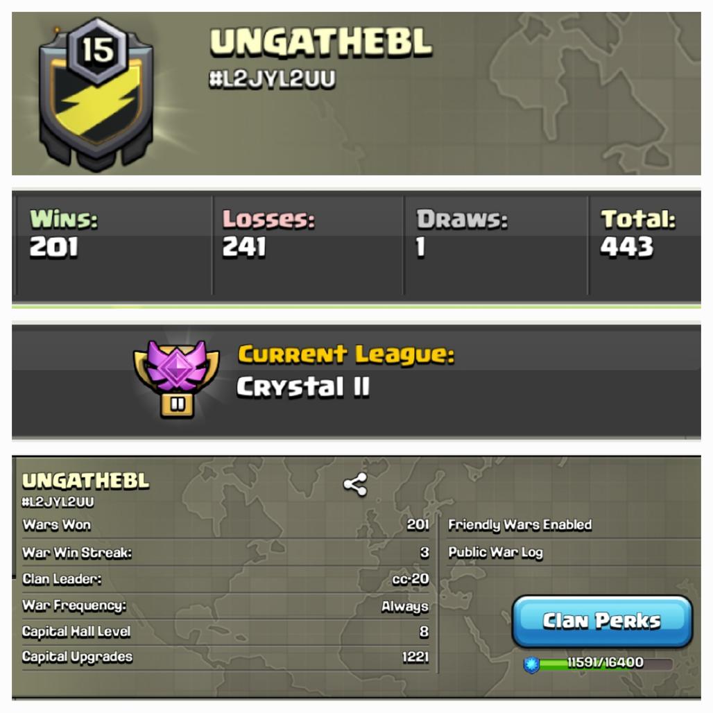 NAME : ONE MAN ARMY ! LEVEL -15L ! POSITIVE WAR LOG! CRYSTAL LEAGUE 2 ! CAPITAL HALL 5! DECENT TROOPS! CHEAP RATE!