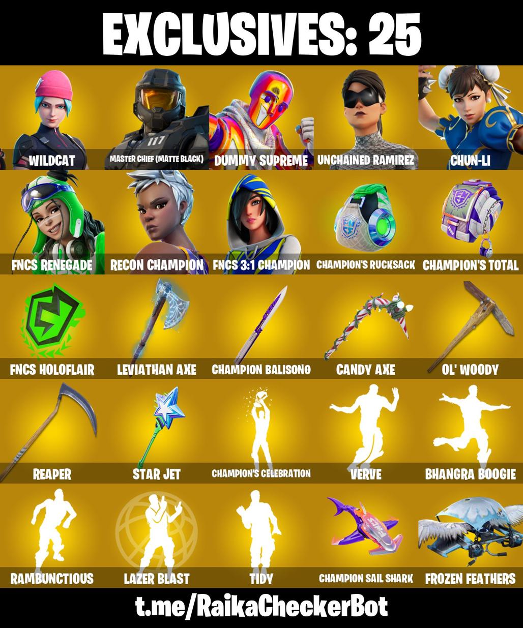 PC.PSN.XBOX | 414 Skins | Wildcat | Master Chief (Matte Black) | FNCS 3:1 Champion | 880 VB LIMITED-TIME DEAL