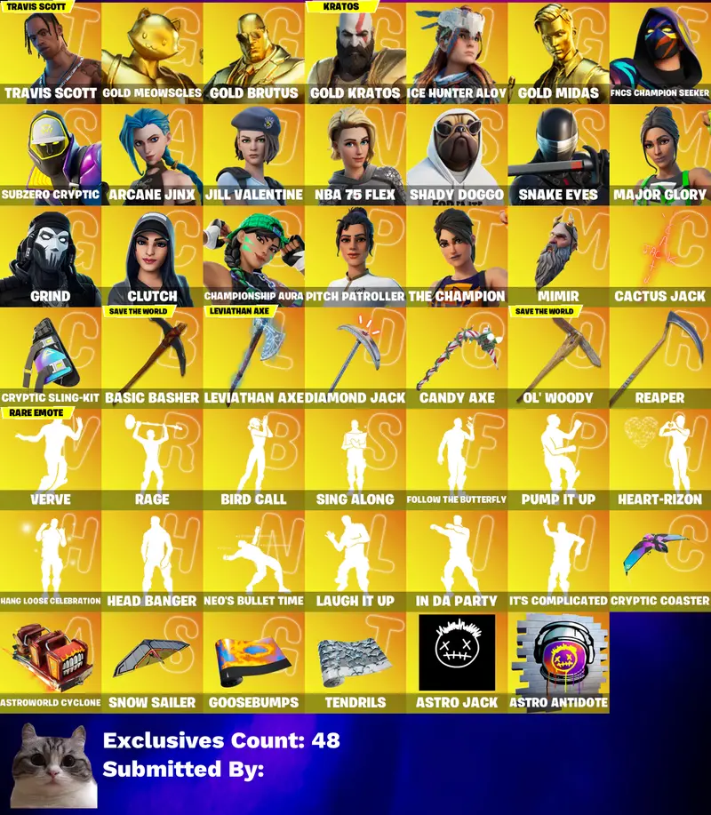 [PC|PSN|XBOX] 711 Skins | Renegade Raider | Travis Scott | Arcane Jinx | Gold Brutus | Gold Kratos | Gold Midas |