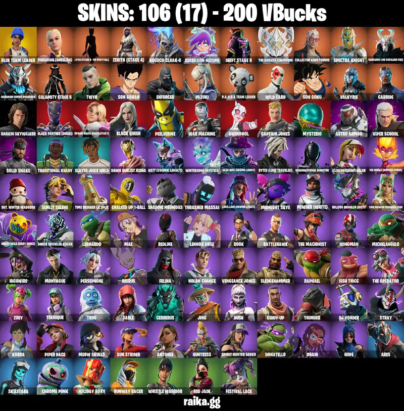 🔥 [🎮 PC/PSN/XBOX] ✨🔥 STACKED ACCOUNT 💎⭐️ - 106 Skins 🏆🎖 - ONLY ONE LEFT ⚡️🔥 Featuring Blue Team Leader 🎽, Paradigm (Aurelian) ✨, Lynx (Stage 4) 🐾, Zenith (Stage 4) 🌌, Rococo Cloak-o 🎭, and Ascension Nezumi 🧠. Includes 200 VB 💎🔥.