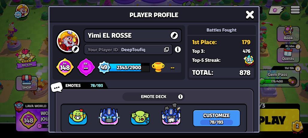🔥Premium Account🔥36 Characters||Journey Level 148||Exp 49||78 Emot Deck||179 First Place|476 Top 3|||35 Win Streak