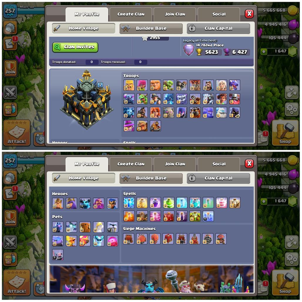 🔥PROFILE MAX-XP 257🔥TH 17 VERY NEAR MAX!HEROS:100-100-73-75-50! GREAT EQUIPMENTS!MAX WALLS!NEAR MAX TROOPS!BEST DEAL