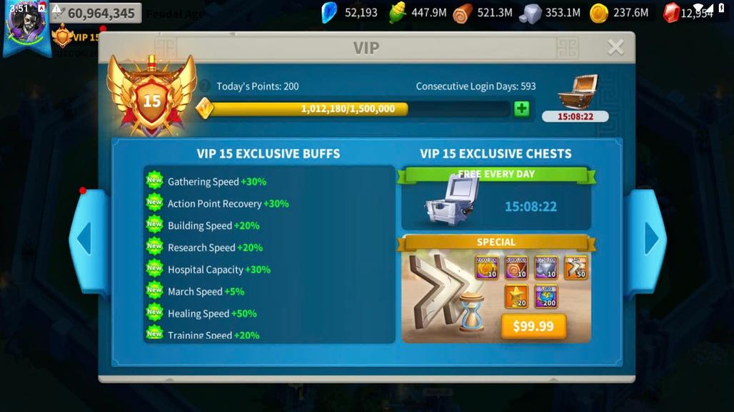 ROK2030: 8 Acc in 1 - Vip 15 - Max 4 Commanders - 31 Passports - 7 Famrs