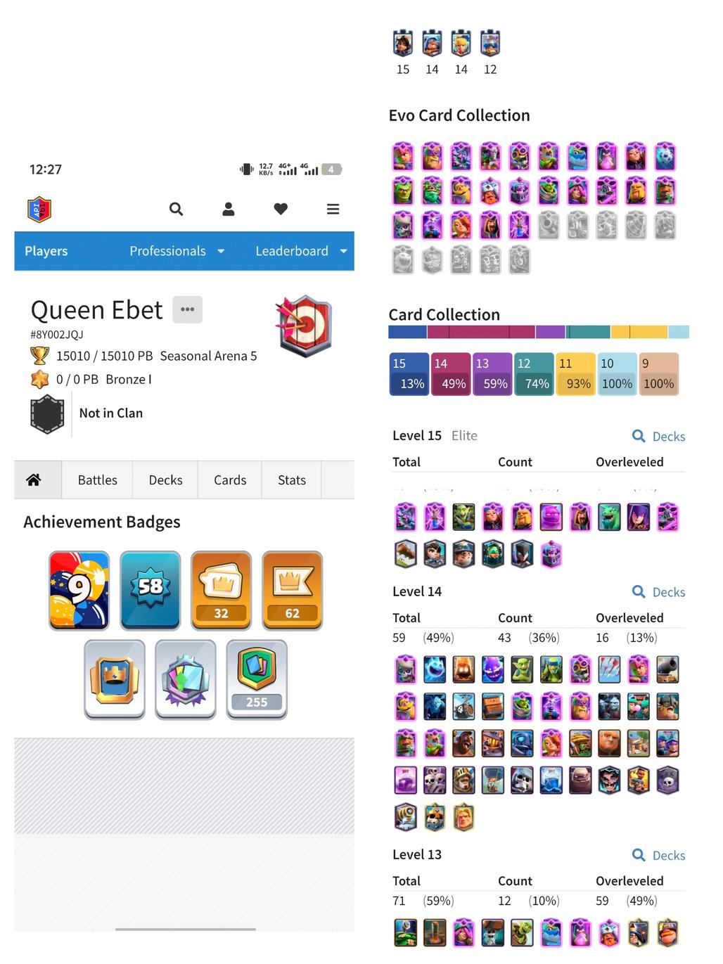 USA LOCAL Clash Royale Account | 25 EVO Cards | 15k Trophies | Level 58 | 9 Badges | 15 Elite Cards || UNLOCK 120