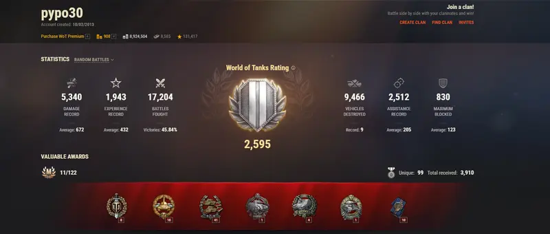 Here you can see the account statistics: worldoftanks. eu/community/accounts/508357903-pypo30