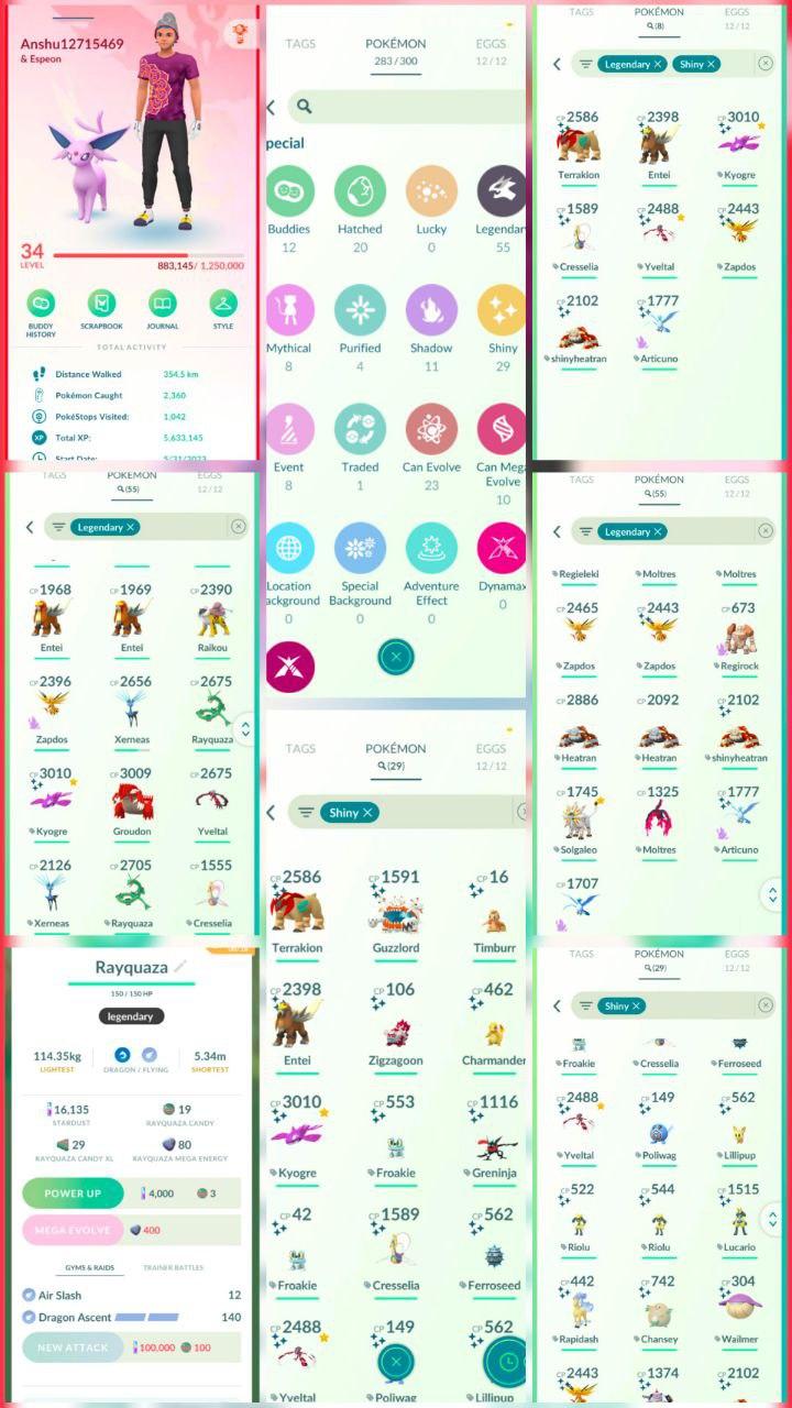 VE3 | Level34 | 55 Legendary | 29 Shiny | 8 Shiny Legend | Galar Moltress | Rayquaza With DA Move | Shiny Guzzulord | Sh
