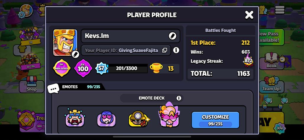 World Journey-180 | XP LVL-57 | EMOTES-99 | SQUAD-35 | WINS-603 | COINS-39K & HEROS POINT-2K | ANDROID & IOS